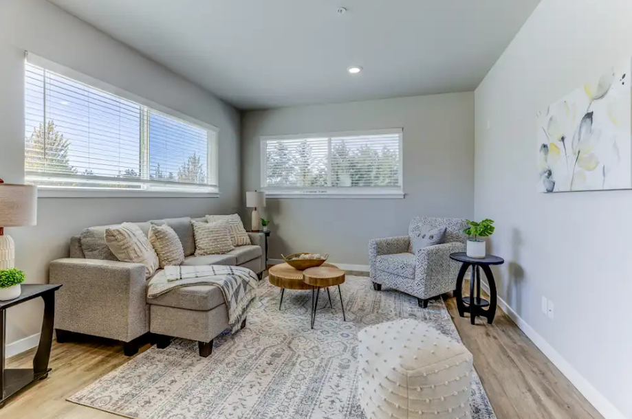 Thanks for checking out Grand Ridge Apartments. We are a locally owned and professionally managed community in University Place, WA. Grand Ridge Apartments is conveniently located with easy access to shopping, dining, parks, and major highways, offering a perfect blend of urban convenience and suburban tranquility. We offer spacious 2-bedroom apartment homes. Our units are a great value, featuring sleek stainless-steel appliances, elegant recessed lighting, in-unit washer and dryer, beautiful wood-look LVP flooring, and so much more.